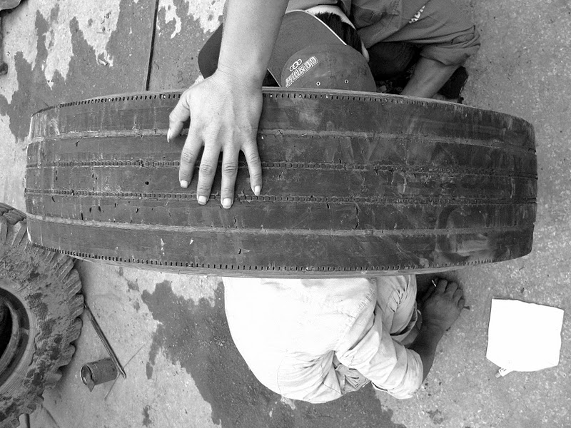 Petite pause " crevaison " lors d'un périple en bus trop long, trop monotone. C'était du récréatif!